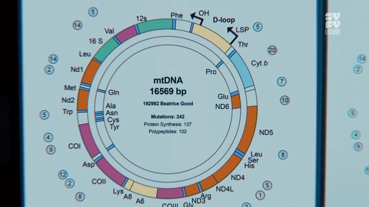 Il lui montra le graphique de l'ADN mitochondrial de la sorcière Benvenguda qui avaient vécu au VIIe siècle en Bretagne et celui de sa dernière descendante vivante la sorcière Beatrice Good. Son ADN avait beaucoup moins de marqueur commun aux sorcières et expliquait que ses ancêtres ne s'étaient plus appuyés sur la sorcellerie pour survivre.[1]